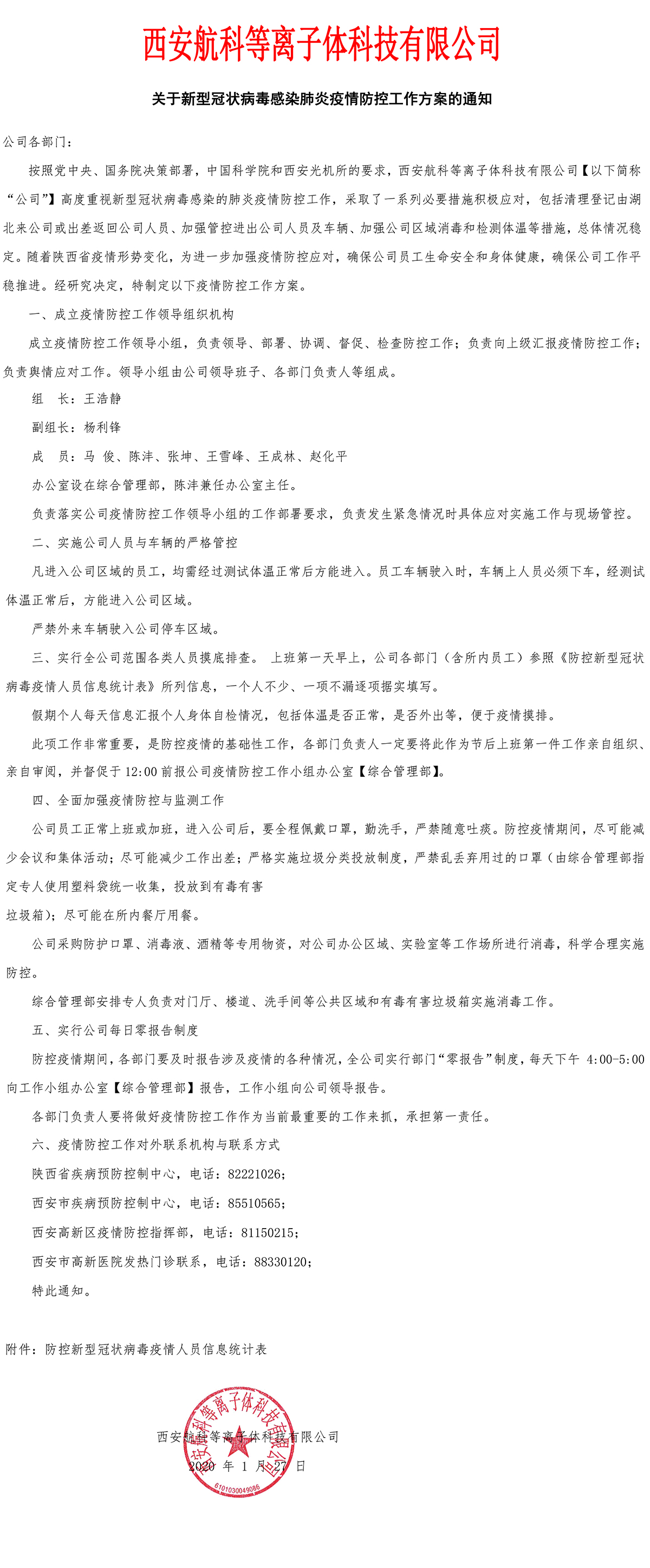 隨著疫情的升級,全國及各省將疫情防控等級調(diào)為一級。西安市實(shí)行全員網(wǎng)格化管理,公司于元月26日及時下發(fā)《關(guān)于春節(jié)后上班時間延期的通知》,經(jīng)公司研究決定,安排如下:
