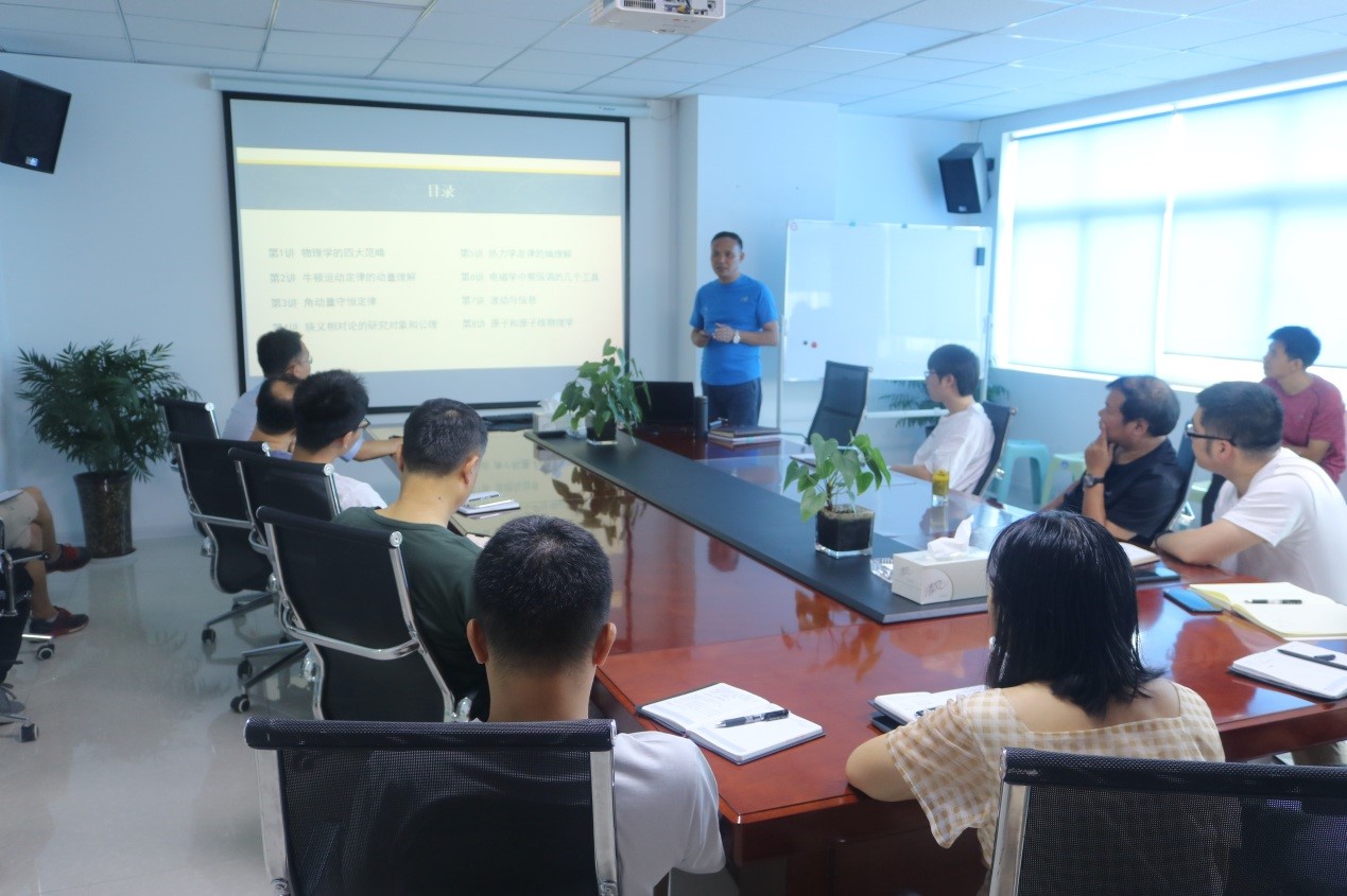 基礎(chǔ)知識是創(chuàng)新的根基和源泉。在邀請多位科研院所、高校的教授、博導(dǎo)蒞臨講學(xué)后,為進(jìn)一步夯實(shí)研發(fā)團(tuán)隊(duì)基礎(chǔ)能力,8月4日至7日,公司特地邀請了浙江省紹興市鑒湖中學(xué)物理特級教師兼浙江師范大學(xué)物理學(xué)科教育研究生導(dǎo)師陳敏華博士,依托德國卡爾斯魯厄大學(xué)物理教材(該教材充分體現(xiàn)了德國物理教學(xué)的嚴(yán)謹(jǐn)性和系統(tǒng)性,對物理概念的外延、內(nèi)涵有深刻的闡述,對物理學(xué)專業(yè)學(xué)習(xí)會產(chǎn)生不可估量的深遠(yuǎn)影響,下文對該教材簡稱KPK),利用三天時間,系統(tǒng)梳理了力、熱、電、磁、波動及原子和原子核物理的基礎(chǔ)。