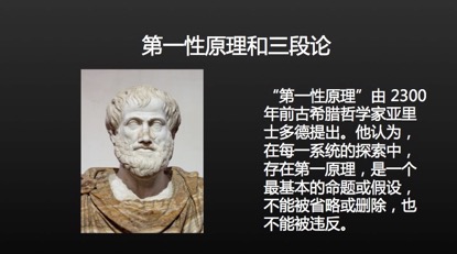 第一性原理是亞里士多德提出來的。亞里士多德認(rèn)為,在每一個體系的探索中,都存在第一性原理,存在基本的命題和假設(shè)。