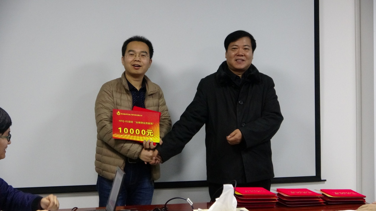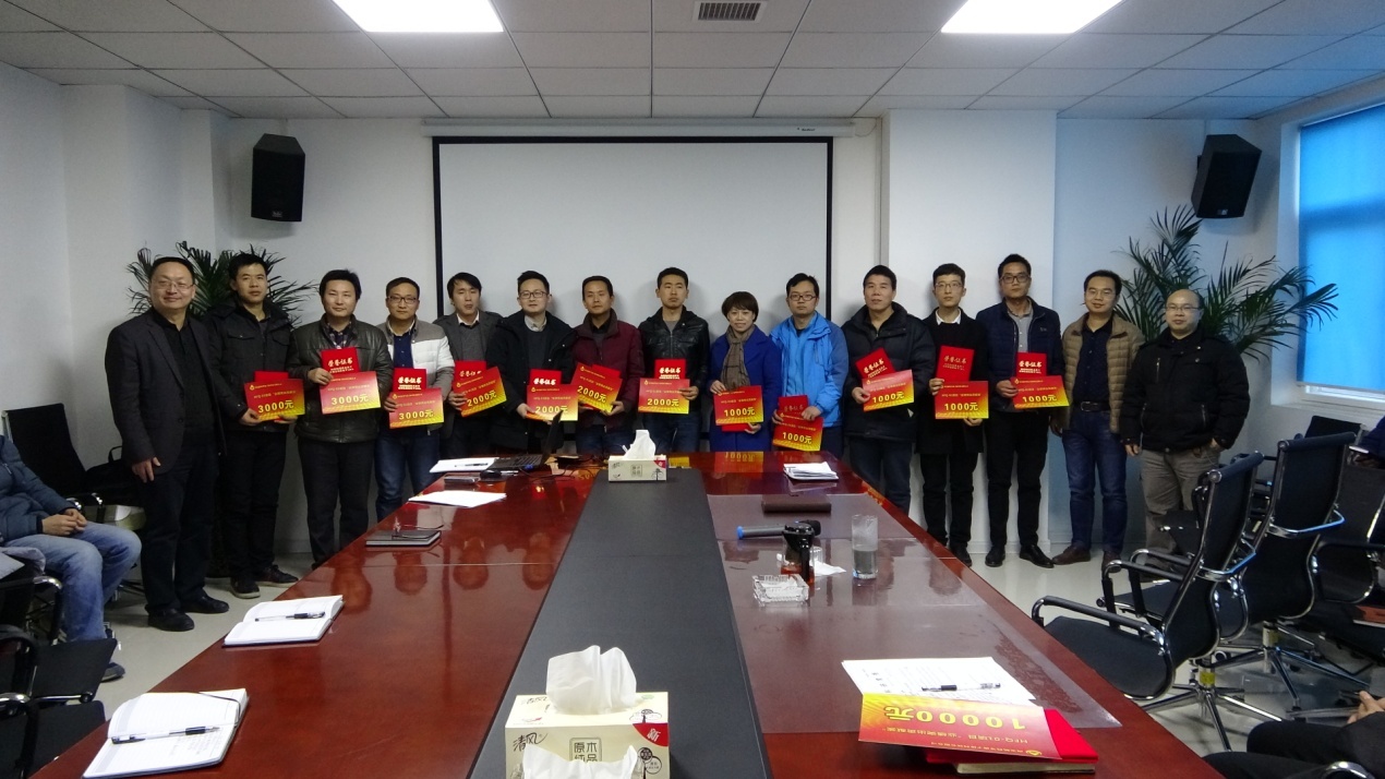 緊接著公司總經理靳有林、副總經理陳紅明、總工程師馬俊分別為項目組其他受到表彰的成員頒發(fā)榮譽證書及獎金,并合影留念。