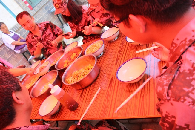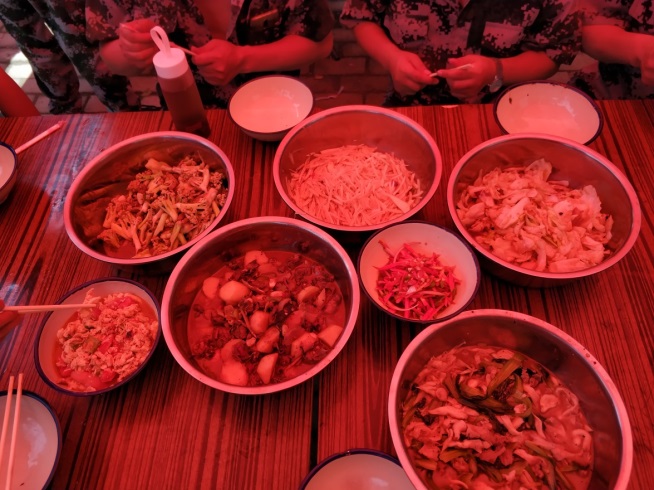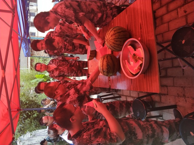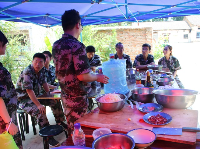 到了中午,我們下廚房自己做飯,有的洗菜,有的切菜,張工、趙部長毫不猶豫的擔任了各自團隊大廚的角色,大家即使已經(jīng)筋疲力盡,但還是沉浸在了烹飪的歡樂當中。