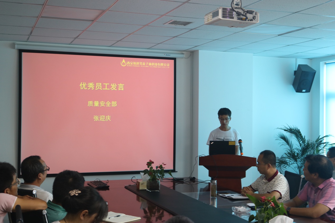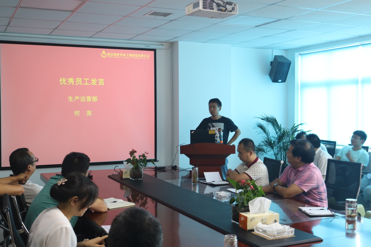 會上,對評選出的2018年上半年3名優(yōu)秀員工進行表彰,對他們樂于奉獻、主動工作的精神予以嘉獎,肯定成績,分享喜悅的同時更要總結(jié)經(jīng)驗,鼓足干勁,為公司更快更好發(fā)展儲備能量。研發(fā)部張忠虎、質(zhì)量安全部張迎慶、生產(chǎn)運營部何亮分別從專業(yè)、感恩、學(xué)習三方面進行發(fā)言,匯報過去的上半年,感悟自己和企業(yè)同步成長,工作中取得的收獲;全體員工應(yīng)以他們?yōu)榘駱?,工作盡職盡責、不畏困難、勇挑重擔。